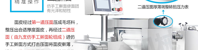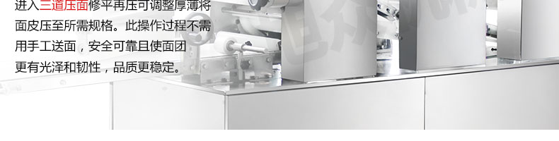 ◆ 產(chǎn)品的面帶經(jīng)過多道壓面工藝,一步步提高筋度和密度,從而提高咀嚼口感;