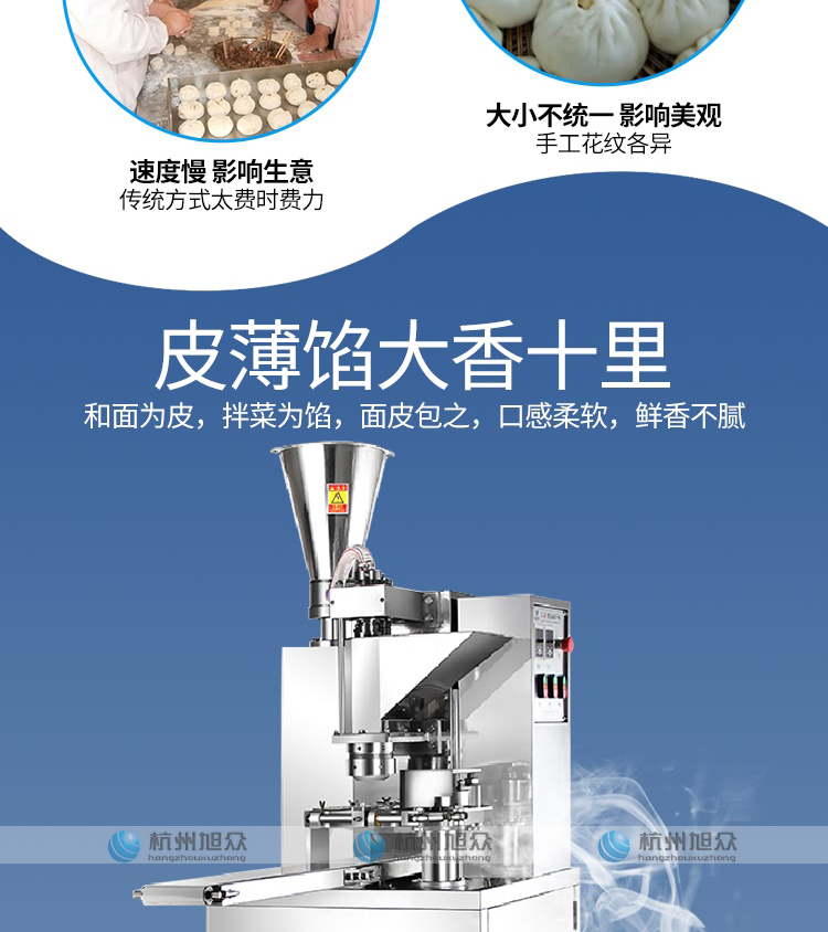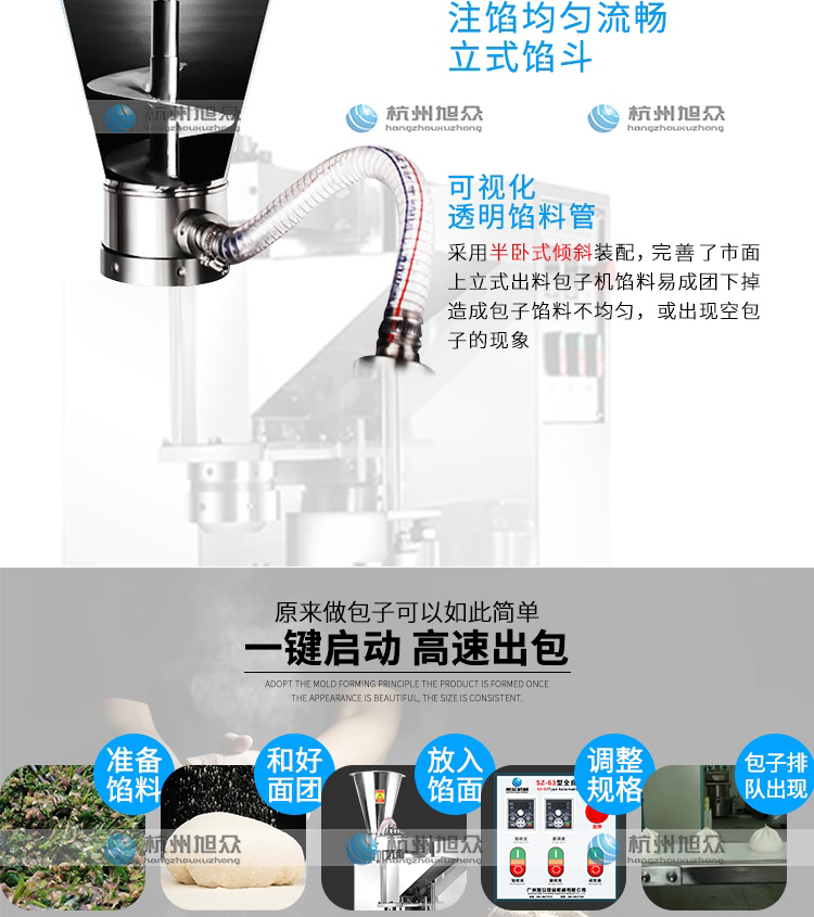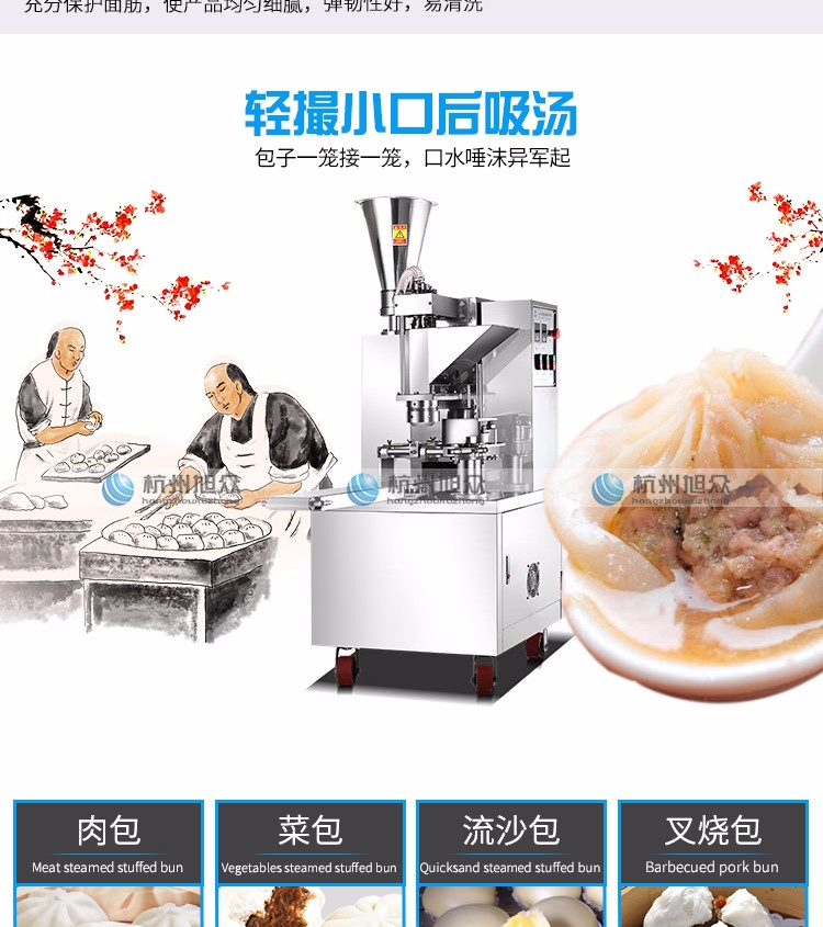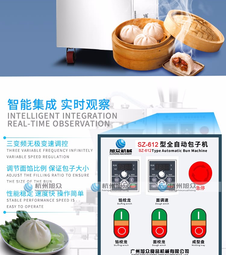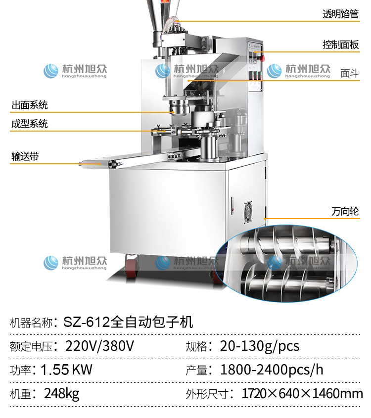 SZ-612型全自動包子機是一款設(shè)計先進,結(jié)構(gòu)簡單,操作方便,生產(chǎn)性能穩(wěn)定的設(shè)備。其體積小重量輕,外殼主要部件采用不銹鋼制作,外觀精美。