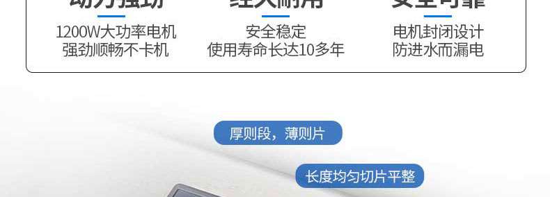 4、標(biāo)配葉菜刀組和片刀組各1套,可自由更換(切碎刀盤另配),