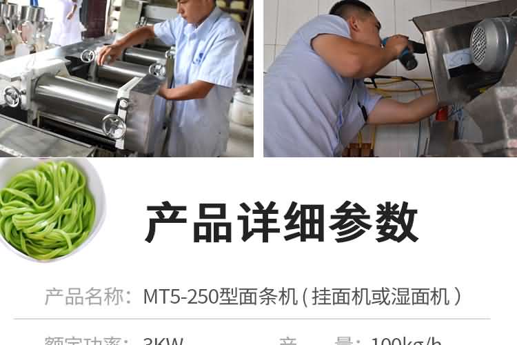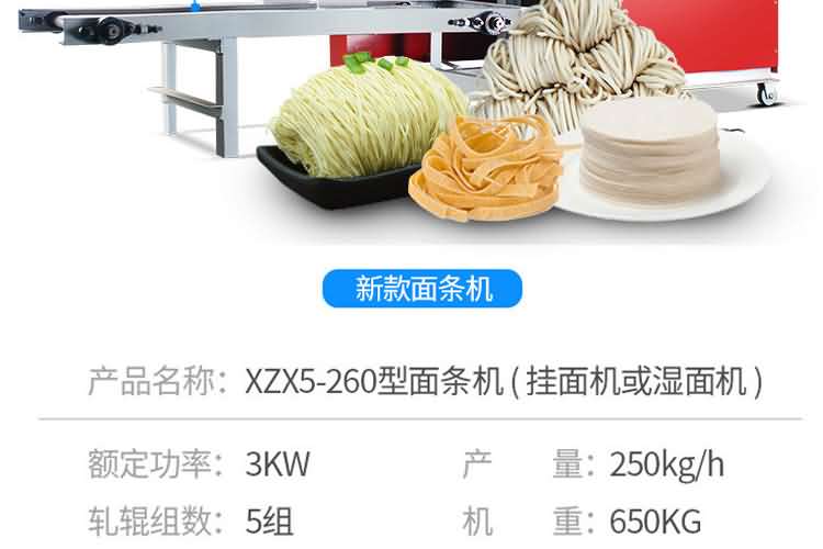 名稱小五組/小六組面條機(jī)(掛面/濕面) 電源380V 功率3kw 產(chǎn)量200kg/h 尺寸2300×600×1400mm 重量450kg 規(guī)格 其他