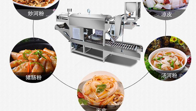 高效節(jié)能河粉機(jī),改機(jī)一機(jī)多用,可根據(jù)需求定制河粉、涼皮、拉腸粉、豬腸粉。全部采用進(jìn)口不銹鋼制造,流線舒暢、整潔美觀、經(jīng)久耐用