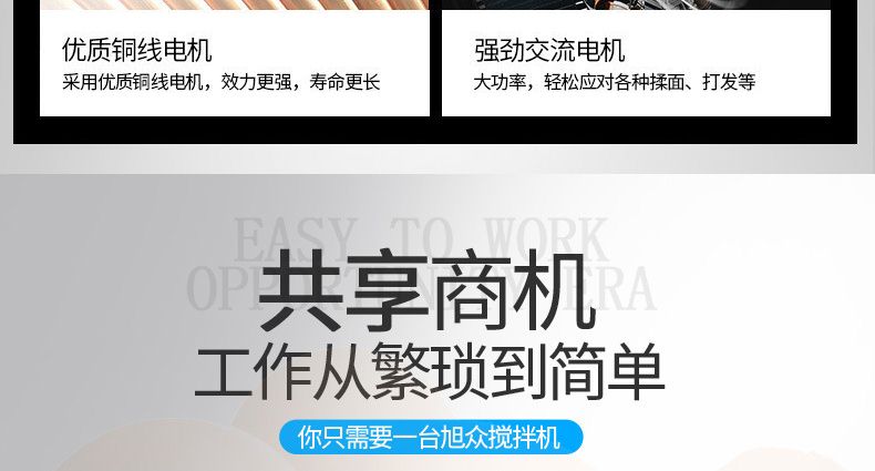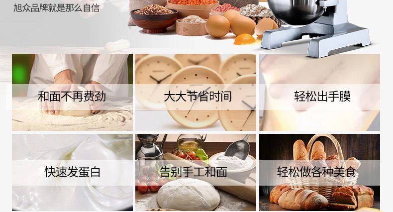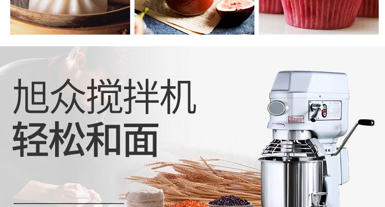 旭眾牌新款A系列食品攪拌機運用行星運動原理,攪拌器在料桶內做行星運動,從而使食品充分混合,具有和面、攪和碎狀。粉狀及液狀食品等多種功能,機器工作平穩(wěn),設有防護罩,安全可靠,設有多級轉速,并配有多種攪拌器,用戶可按不同要求選擇適當的速度和攪拌器,以實現和面、拌餡、打蛋等功能。機內凡接觸食物的零部件均采用不銹鋼制造或經特殊表面處理。符合食品衛(wèi)生標準。