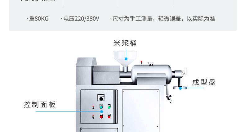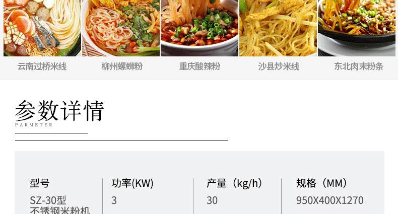 名稱SZ-30不銹鋼米粉機 電源220/380V 功率3kw 產(chǎn)量30kg/h 尺寸950*400*1270mm 重量80kg 規(guī)格 其他