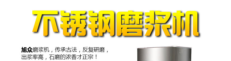 旭眾牌SZ-12/15/20不銹鋼磨漿機結構合理,造型美觀,操作簡便。具有體積小、重量輕、噪音低、省力,性能穩(wěn)定、質量可靠、容易清洗、移動方便等優(yōu)點,適用于豆制品廠、飲食服務業(yè)、食堂、飯店及個體商戶使用。