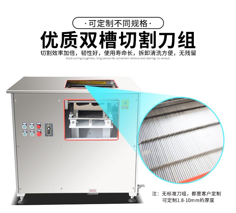 本機外形美觀、操作簡單、效率高、耗電小、清潔保養(yǎng)容易、安全衛(wèi)生、切肉效果好等優(yōu)點,切鮮魚機器其造型美觀、結(jié)構(gòu)緊湊、堅固耐用,切魚片機器價格實惠是賓館、酒家、食堂、肉類加工場等單位所不可缺少的肉類加工機械