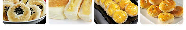 ◆適用于生產(chǎn)酥餅類:酥式月餅、老婆餅、綠豆餅、蔥油餅。面包類;奶油面包、豆沙面包、奶黃面包。面點(diǎn)類:荷葉夾刀切饅頭、豆沙包、壽桃包、奶黃包等。