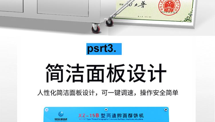 旭眾牌XZ-15B二道搟面酥餅機(jī)是我公司仿手工制作面食產(chǎn)品的機(jī)型,占地面積小,重量輕,它吸收國內(nèi)傳統(tǒng)手工制作技術(shù),即運(yùn)用搟面杖壓面和打擊面團(tuán),以保證高面筋性和面帶的密度,并綜合考慮面食的口感而研發(fā)。