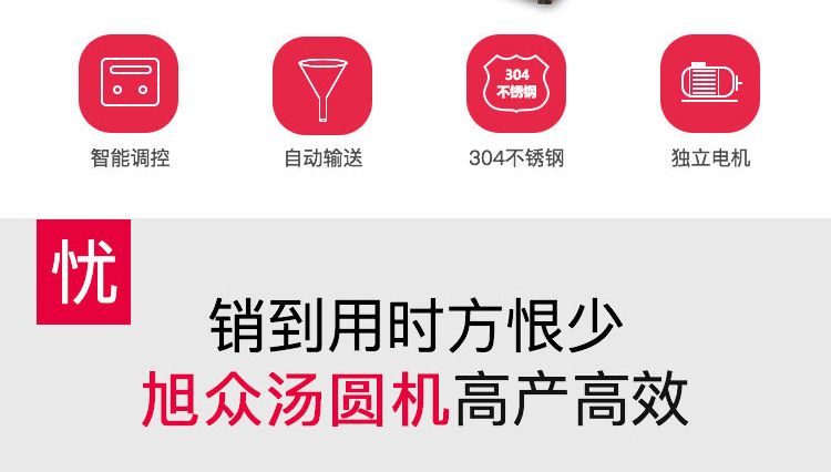 旭眾牌VFD-4000A型全自動湯圓成型機是一款依外皮及餡料的各類不同,可制作湯圓、豆沙包、南瓜餅、奶黃包、含餡饅頭、玉兔包等包餡食品。功能齊全,適用性廣,自動化程度高,定量準確,操作簡單,只要將面團與餡料放入進料口,開機便可自動搓圓、成型,制品不易變形。