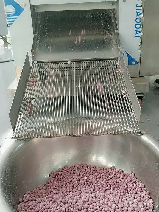 合成的面團(tuán)可通過旭眾無餡湯圓機(jī)分割搓圓成一個個小丸子,一小時可生產(chǎn)0~120kg,規(guī)格6-22mm可定制(注:一臺機(jī)器只有一種規(guī)格,所以一定要確定好自己要的規(guī)格)